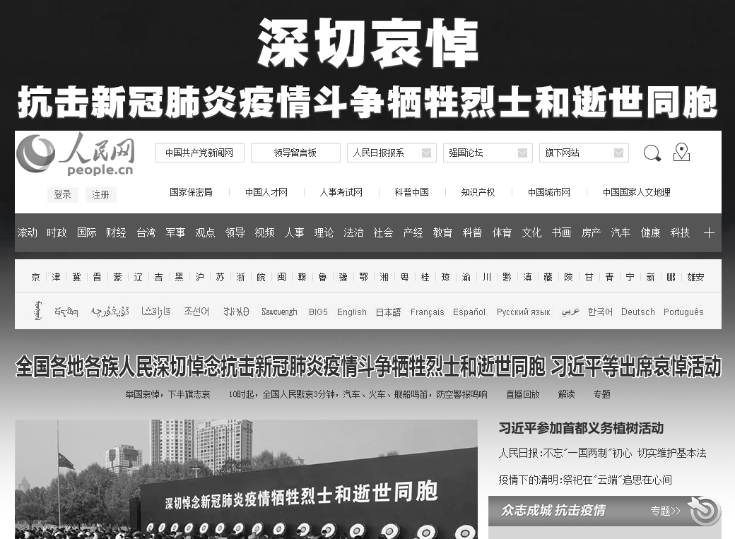 全国各地各族人民深切悼念抗击新冠肺炎疫情斗争牺牲烈士和逝世同胞,习近平李克强栗战书汪洋王沪宁赵乐际韩正王岐山 在京出席哀悼活动。